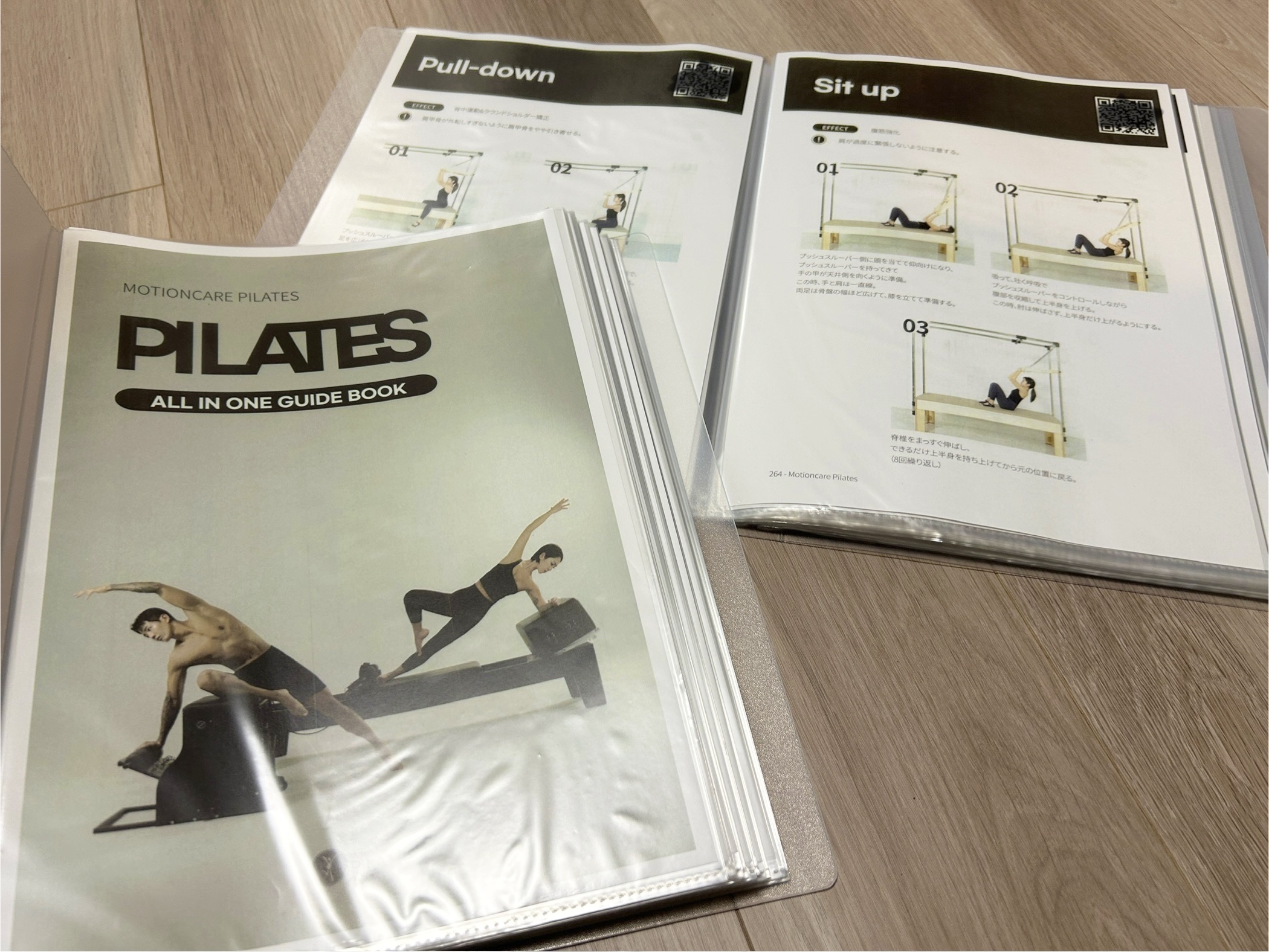 使い方動画のQRコードが記載されたオールインワンピラティスガイドブックも置いてありますので、